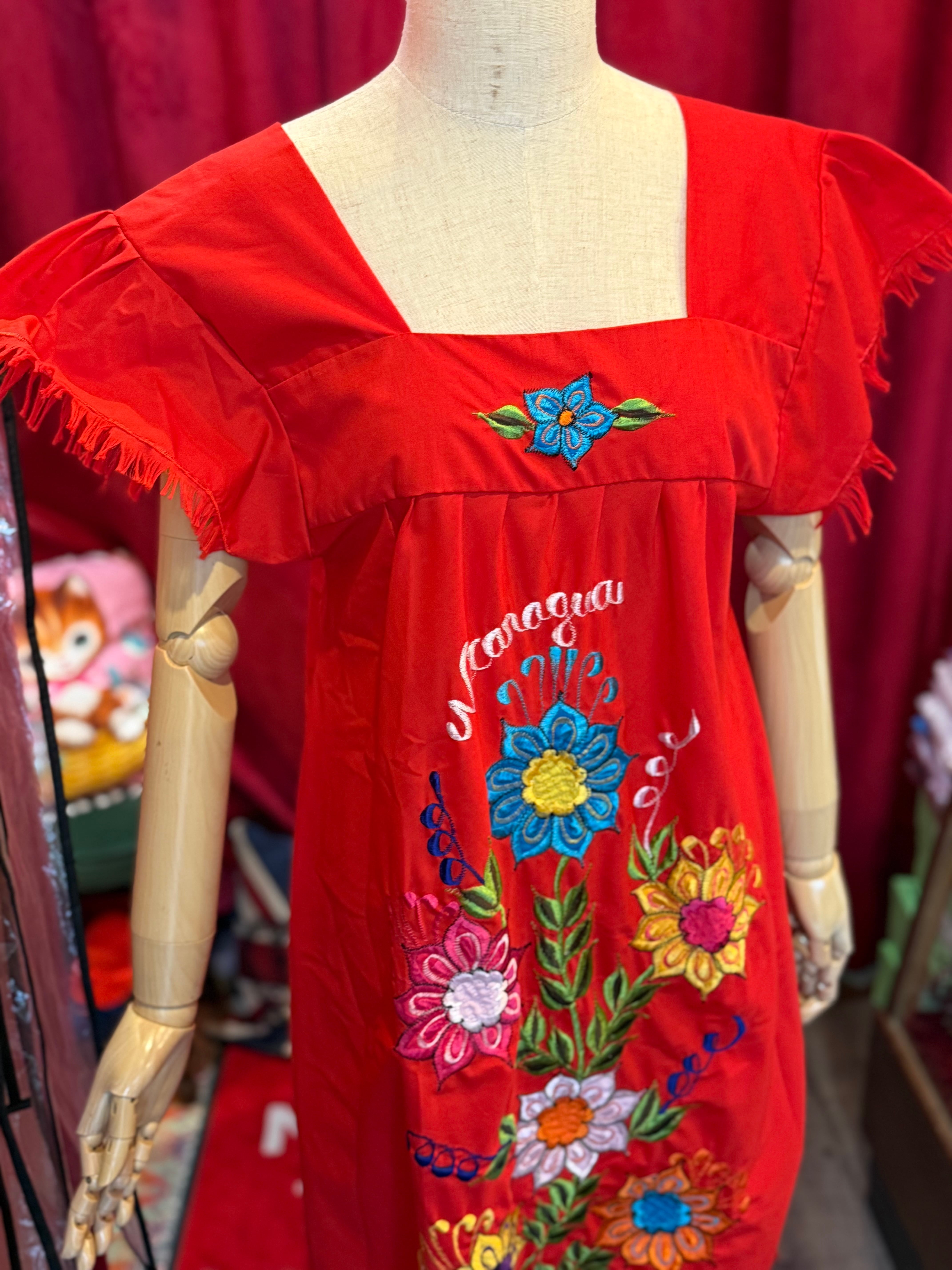 フロントの大きな刺繍が目を引くアジアンテイストなワンピース。