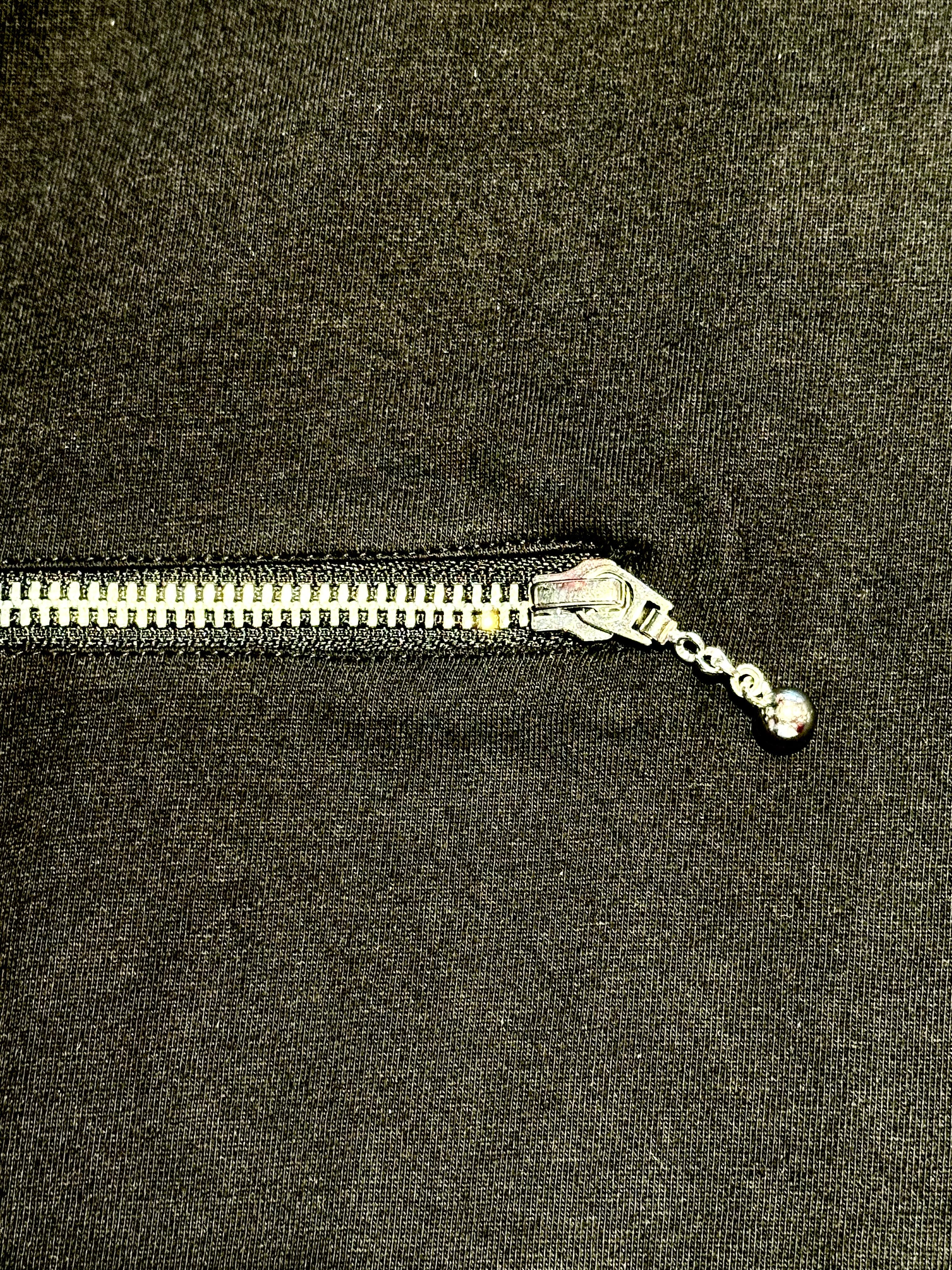 胸元にはジッパーデザイン、背面にはブランドロゴのプリント入り。