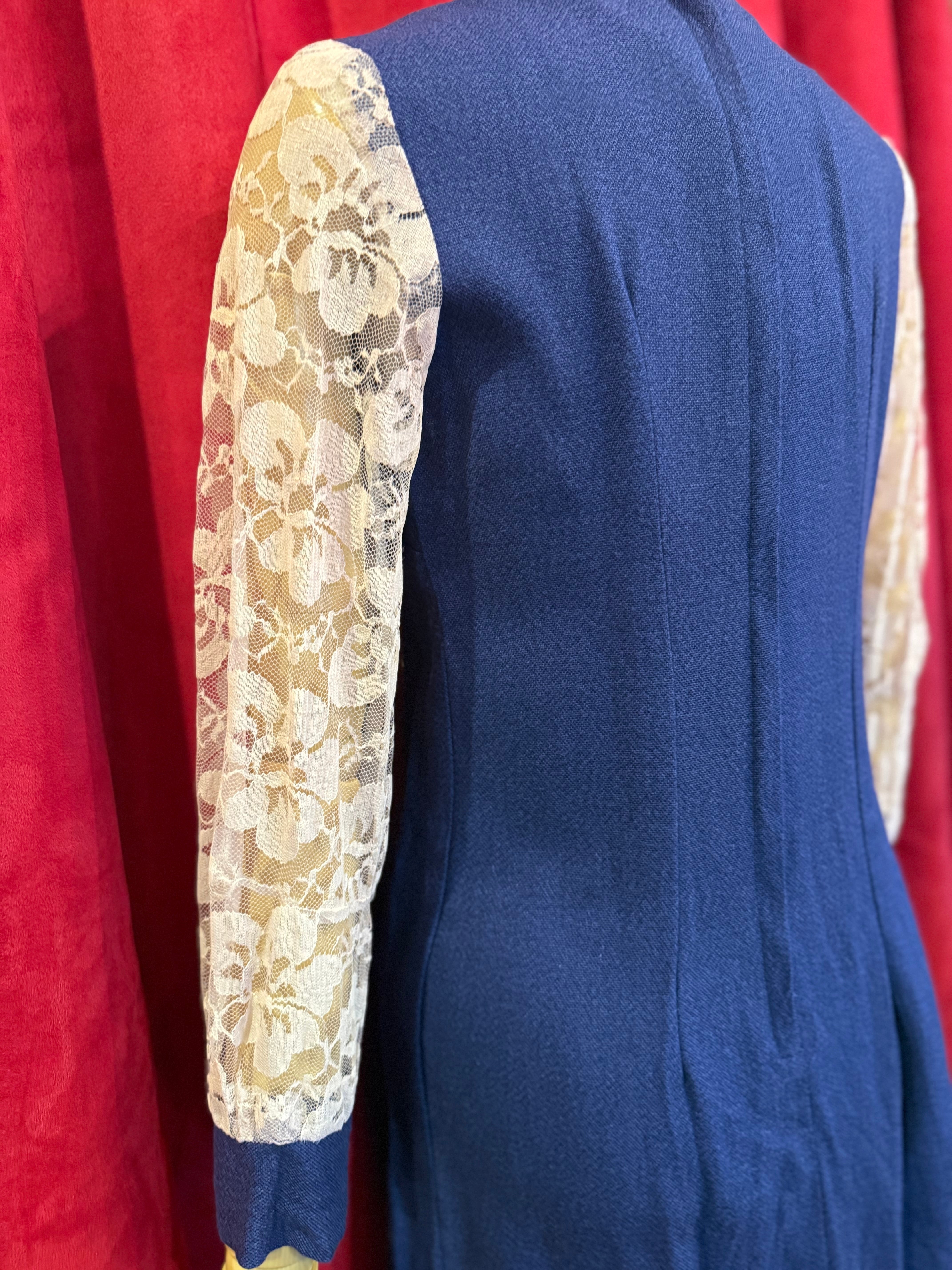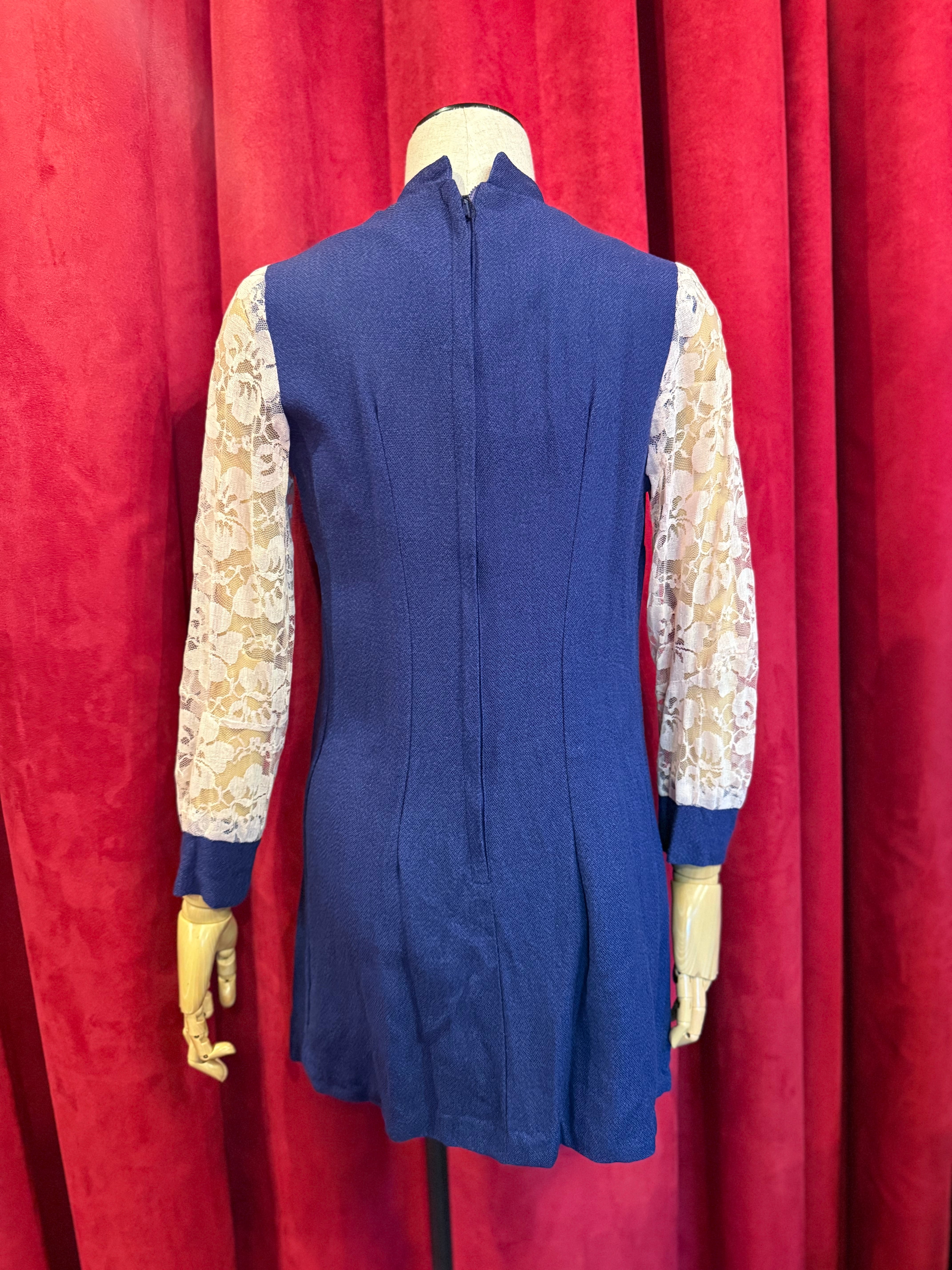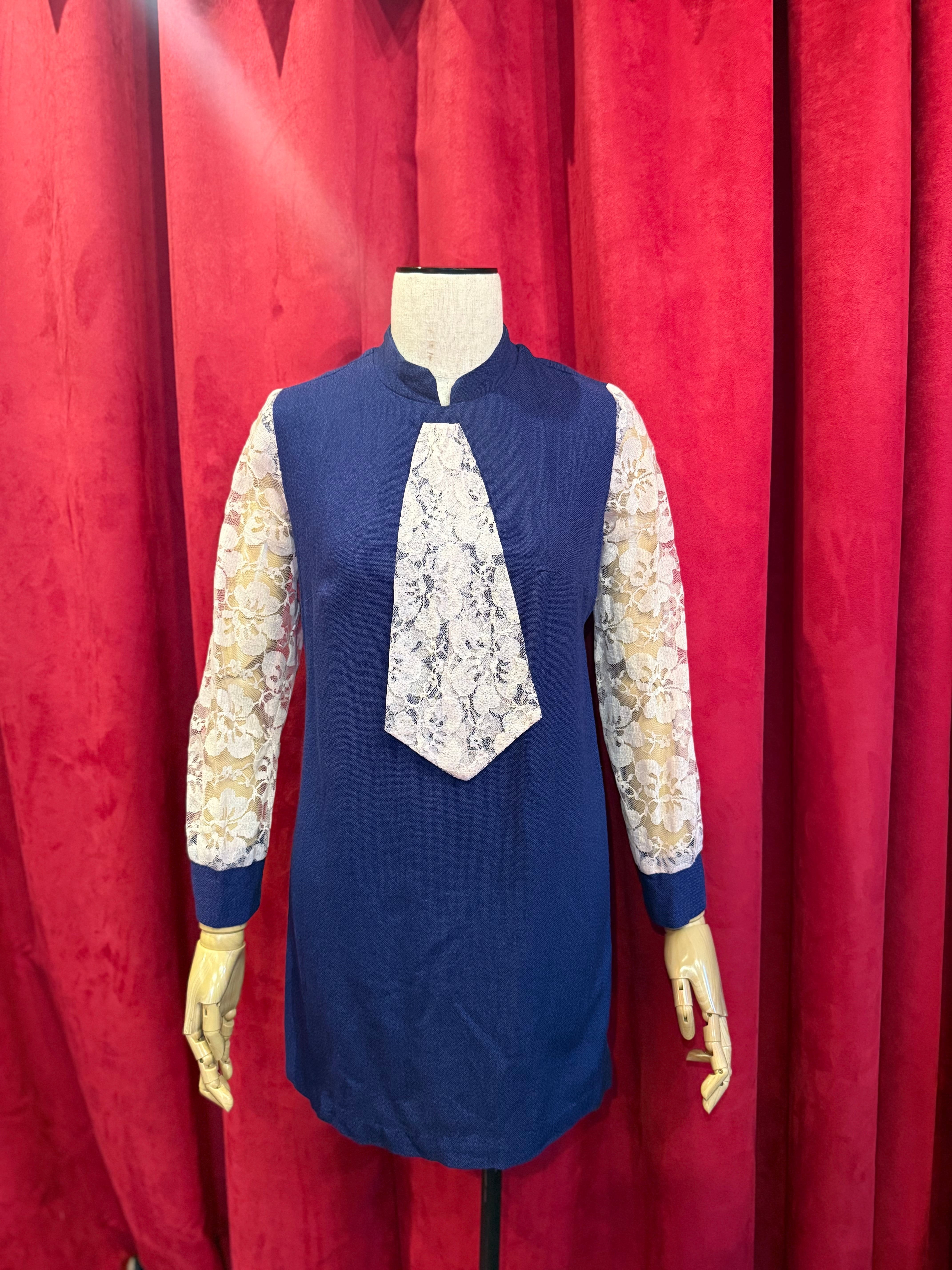 レースのお袖とネクタイが目を引くミニワンピース。パンツとコーディネートしても素敵です。カラータイツやロングブーツとの相性も抜群でサイケデリック好きな方にもオススメ。