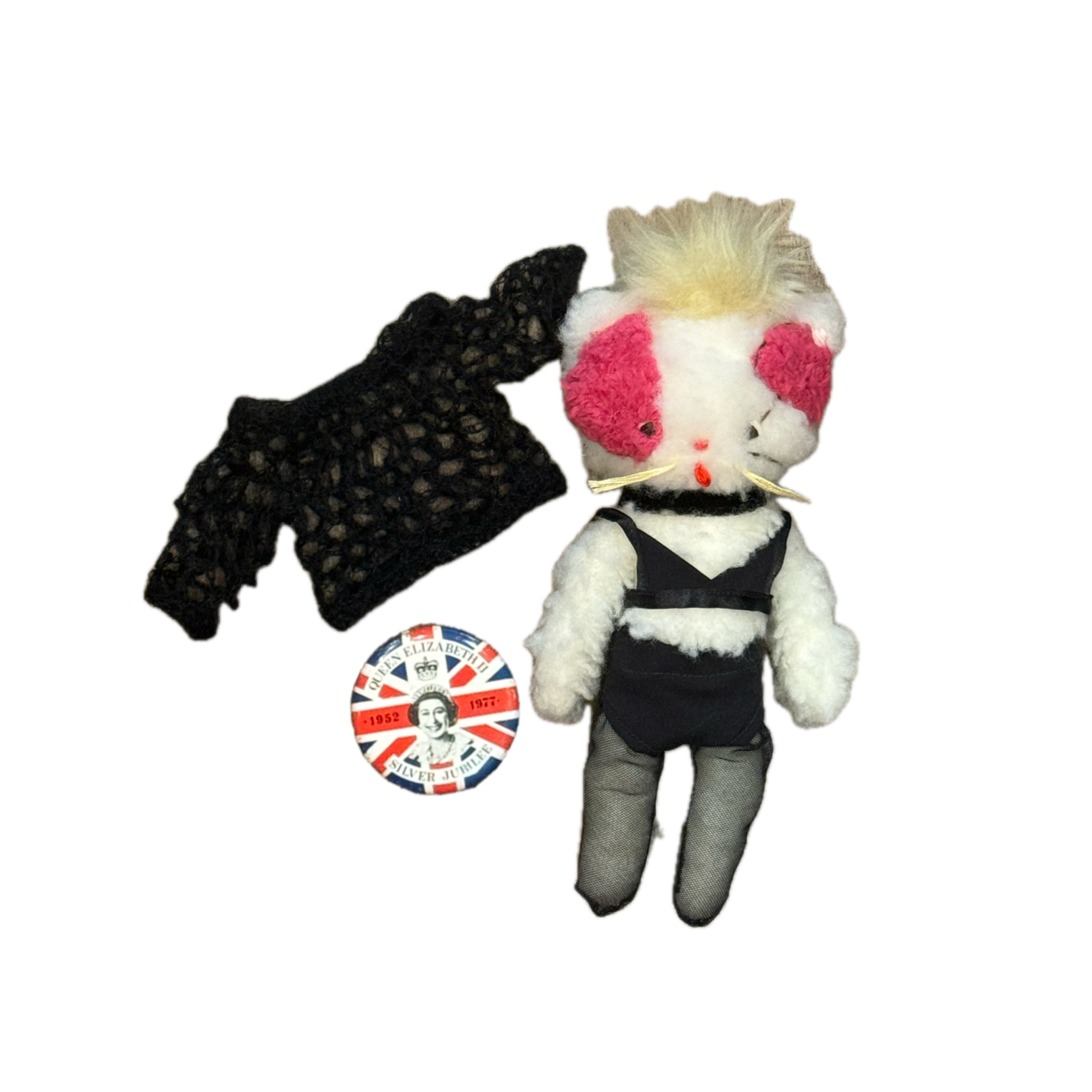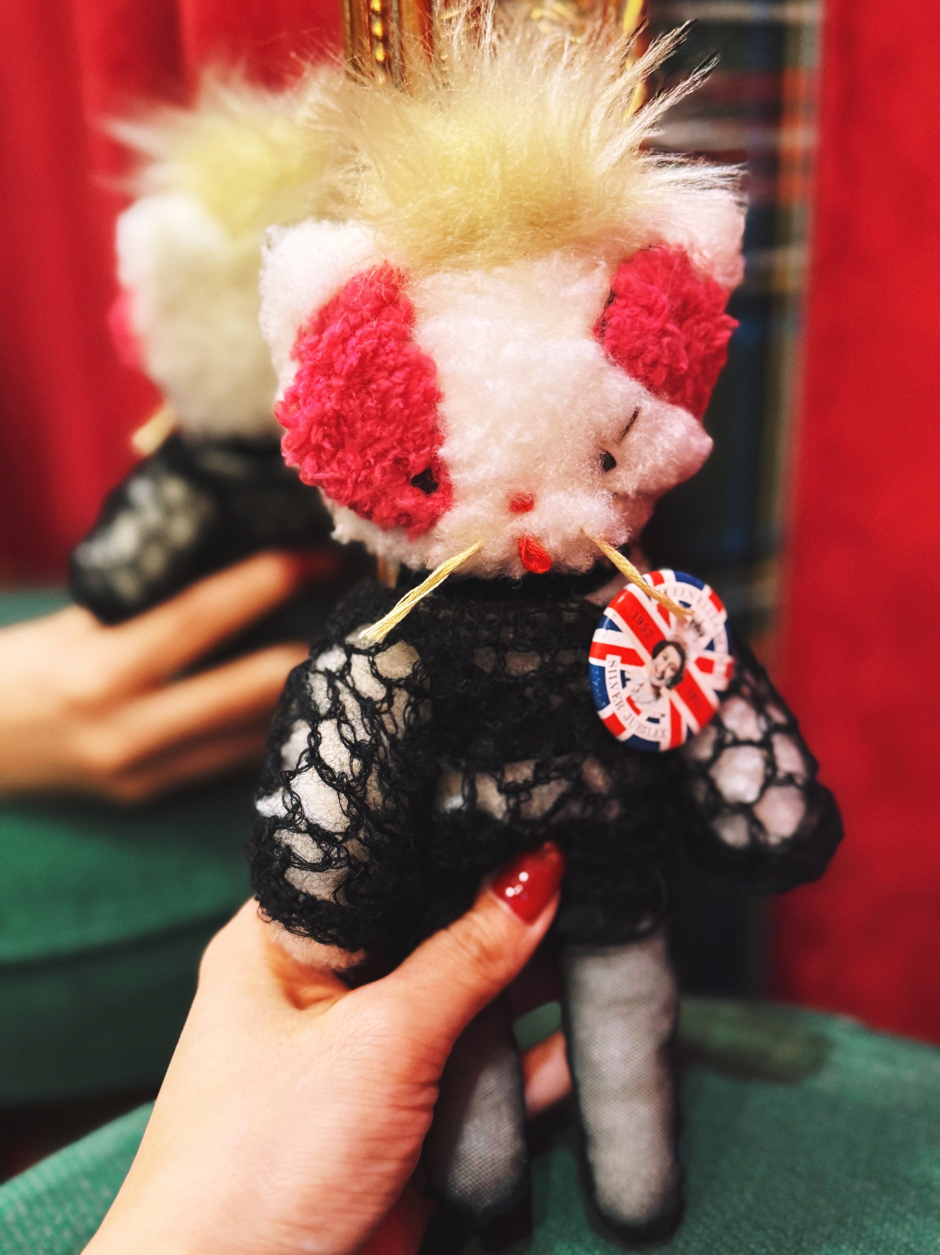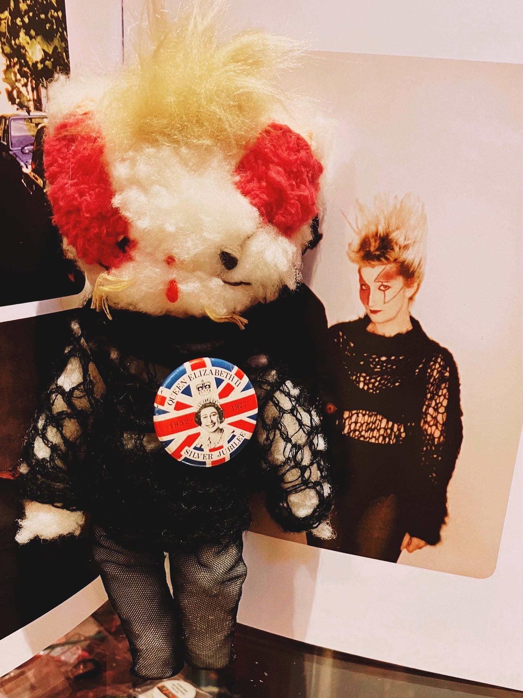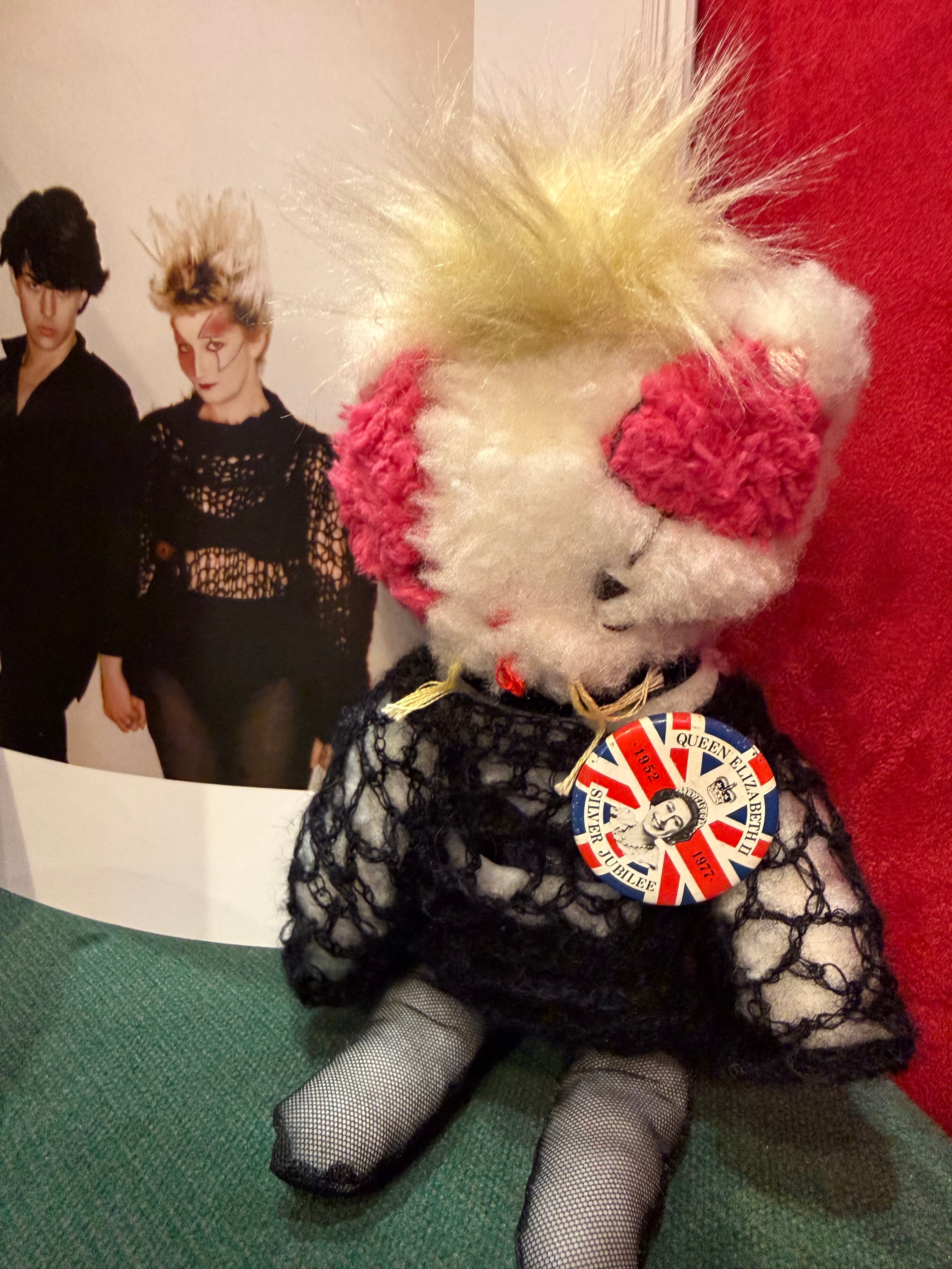 『JORDAN ART DOLL』。1点1点丁寧に心を込めて制作して下さいました。Jordanメイク、Jordanのファッション、そしてJordanが実際つけていた1977年Silver Jubileeのヴィンテージ缶バッチ付。モヘアやタイツ、下着など細部にまで、作家さんの想いとこだわりがたっぷり詰まった作品です。可愛いくラッピングしているので、プレゼントにもピッタリ。