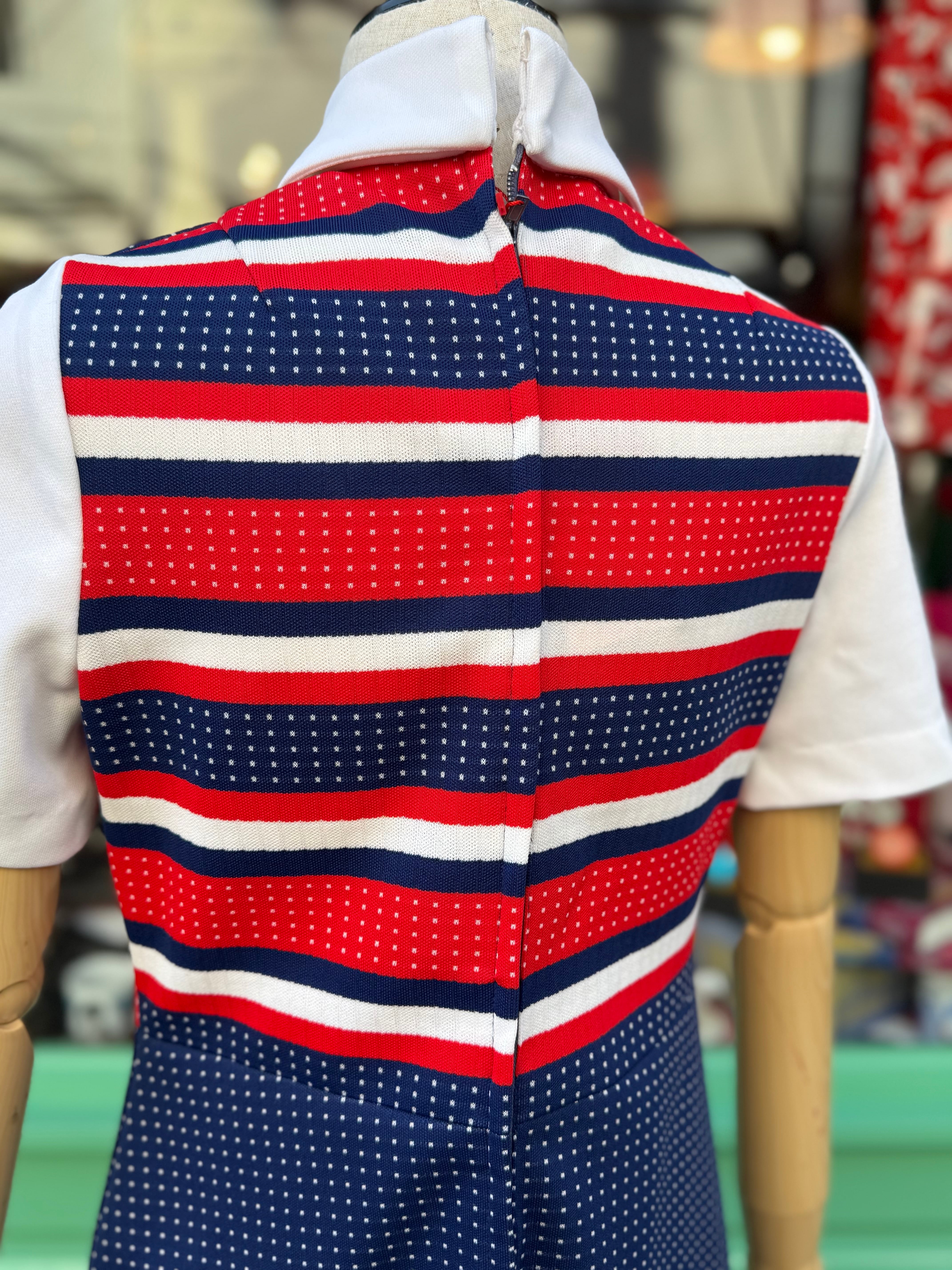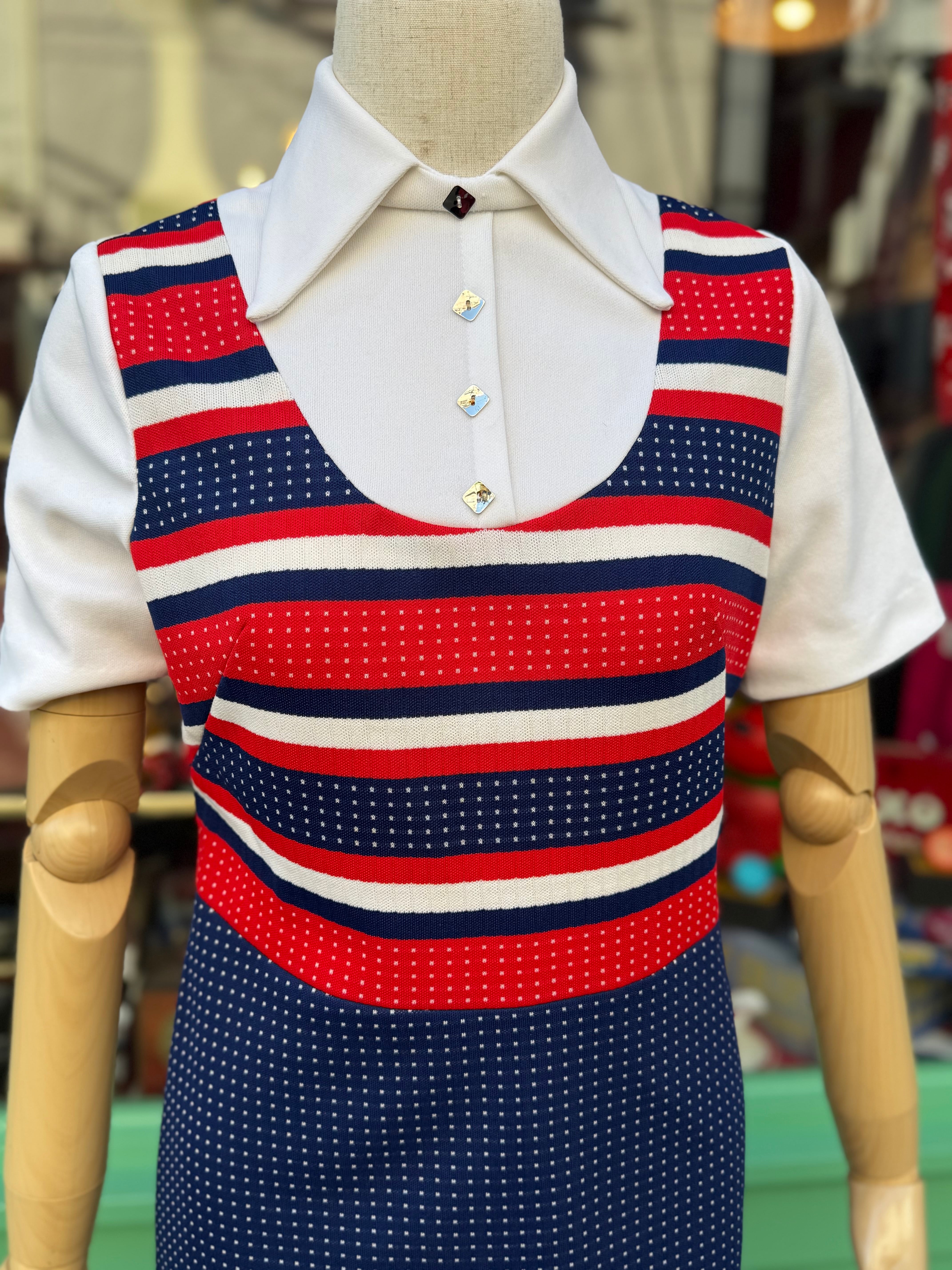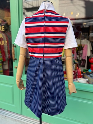 イギリスより買い付けました60年代のワンピースです。トリコロールカラーの60’sらしいミニワンピース。裏地は付いておりませんが、軽やかでさらりとした着心地です。ベルトなどの小物との相性も良く、ホワイトブーツなど合わせていただくのもオススメです。