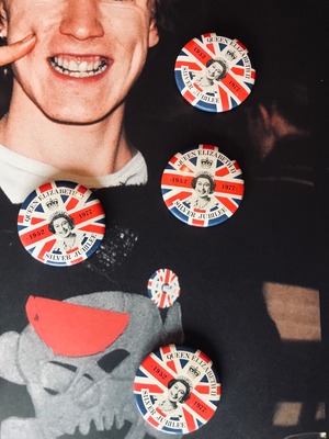 エリザベス女王在位25周年をお祝いするSilver Jubilee。大変珍しく1977年に販売された当時の物です。ジョニーロットンやジョーダンも付けているお写真が残っております。