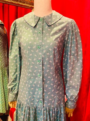 リボン柄が女の子らしくとってもキュートなデザイン!! Laura Ashleyのヴィンテージドレスはイギリスでも大変人気があり最近ではなかなか手に入りずらくなっております。オーバーサイズで着ていただくと素敵です♡