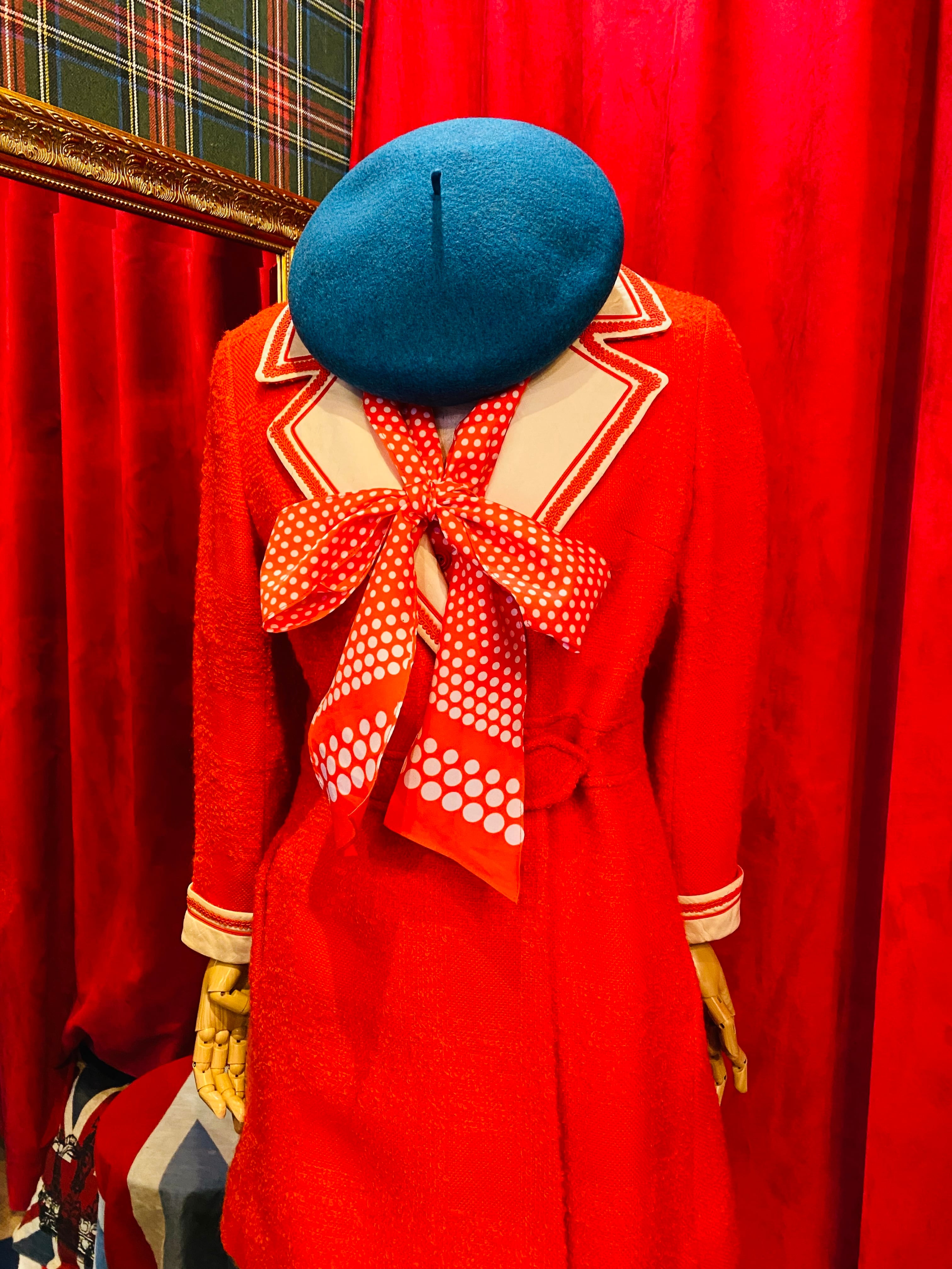 お帽子やタイツとの相性も抜群です。赤色の裏地が付いております。状態は非常に良くクリーニング済です。ですがヴィンテージ品となりますのでご理解の上ご購入お願い致します。