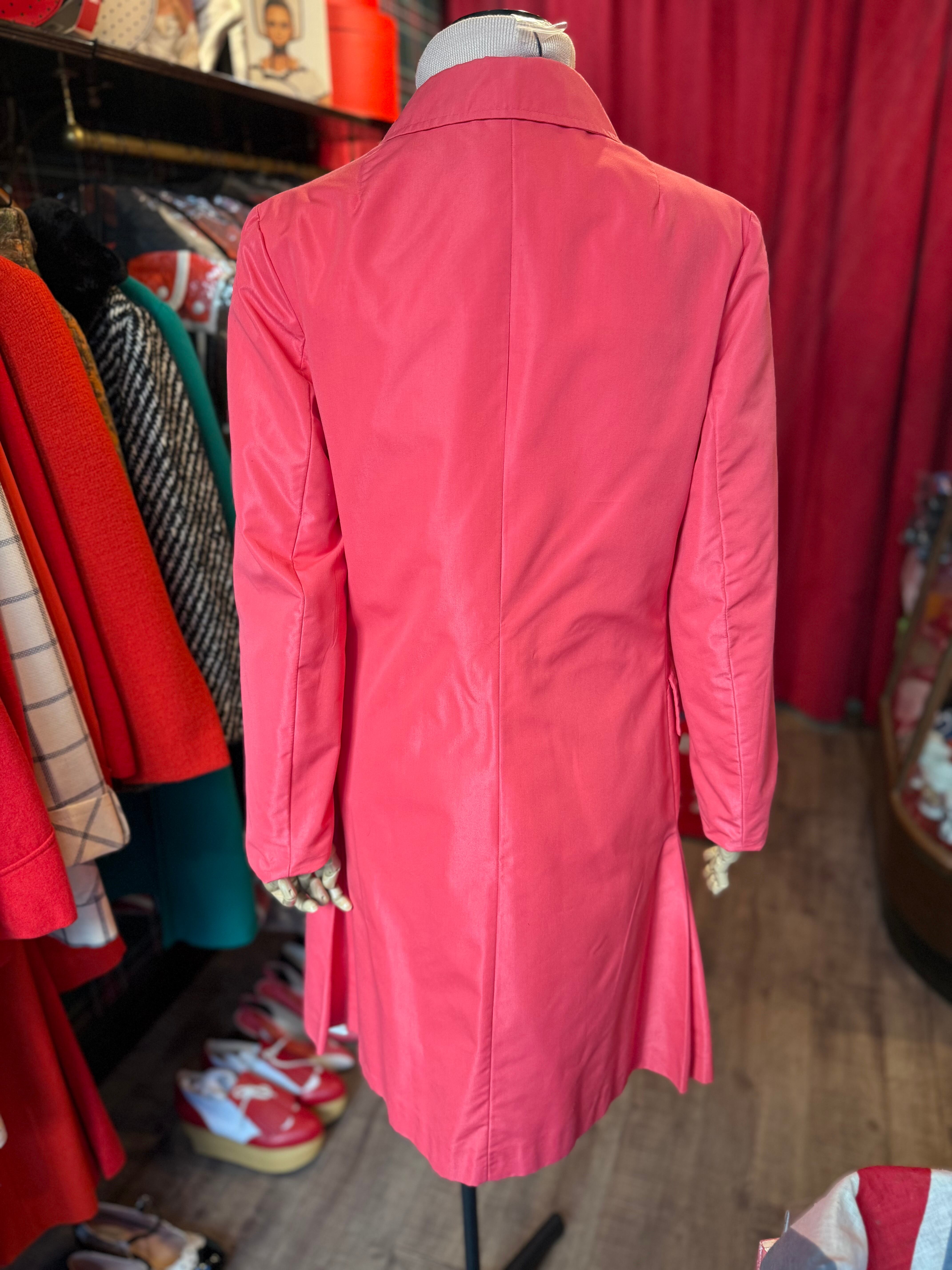 春らしいピンクのカラーが目を引く、爽やかで女性らしい一着です。スカーフと合わせると、さらに素敵なコーディネートが完成します。